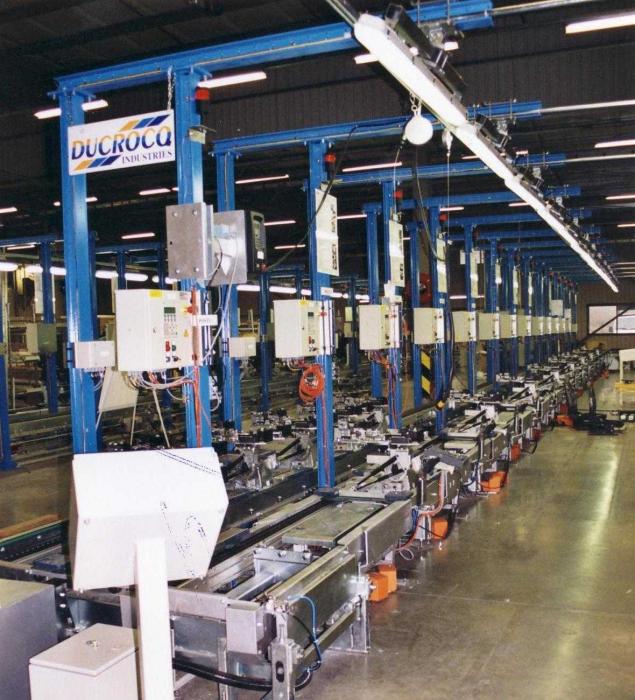 Client : FAURECIALocalisation : opérationnelle à Sandouville, Mulhouse, Born aux Pays Bas, Sochaux, Rennes, Vido en Espagne et en AngleterreAnnée de réalisation : 1999Descriptif : Lignes d'assemblage pour fabrication de sièges automobiles.Caractéristiques : Longueur de 45 mètres.